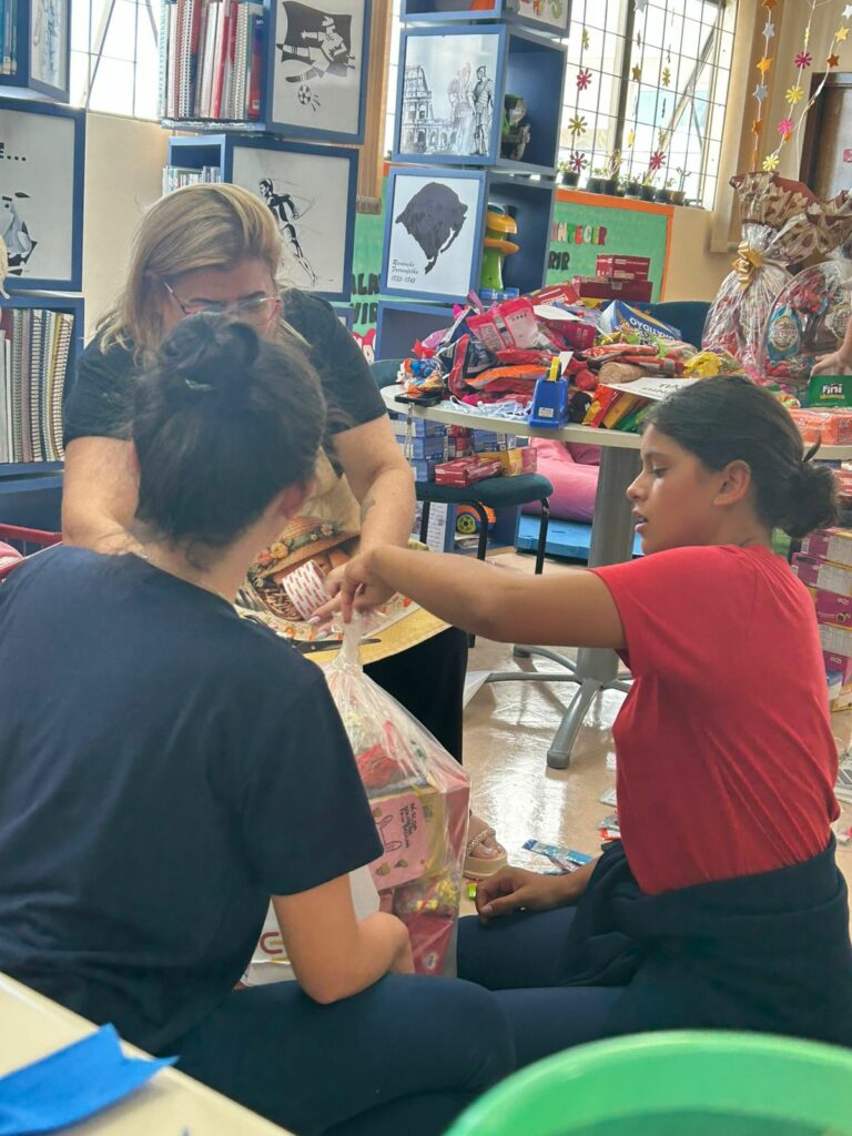 Com o engajamento das famílias, estudantes e colaboradores, a campanha arrecadou centenas de itens, chocolates e ovos de Páscoa, possibilitando a montagem de 302 kits de doces entregues às instituições.